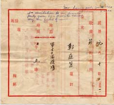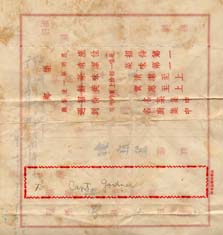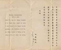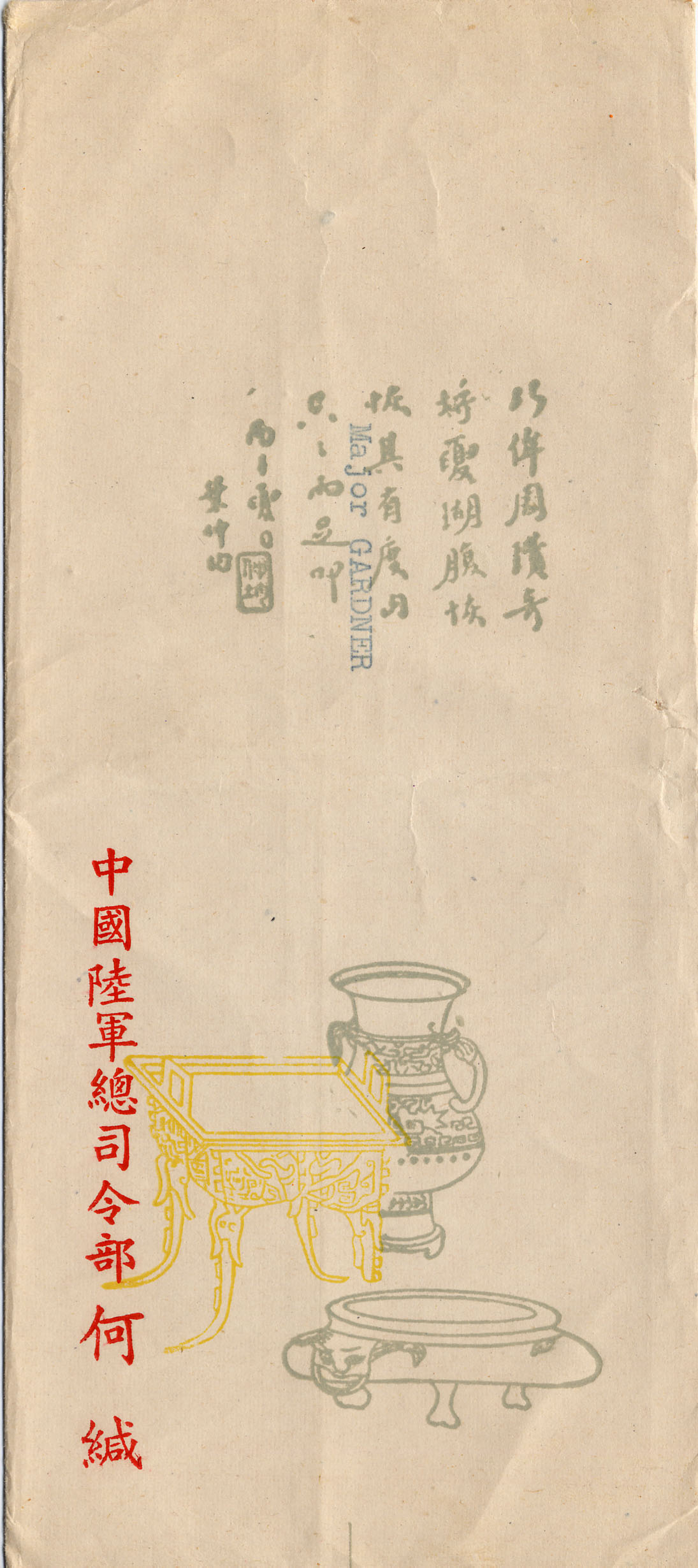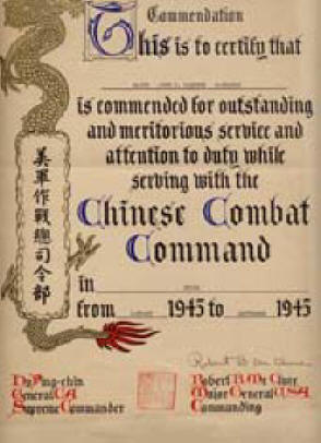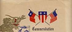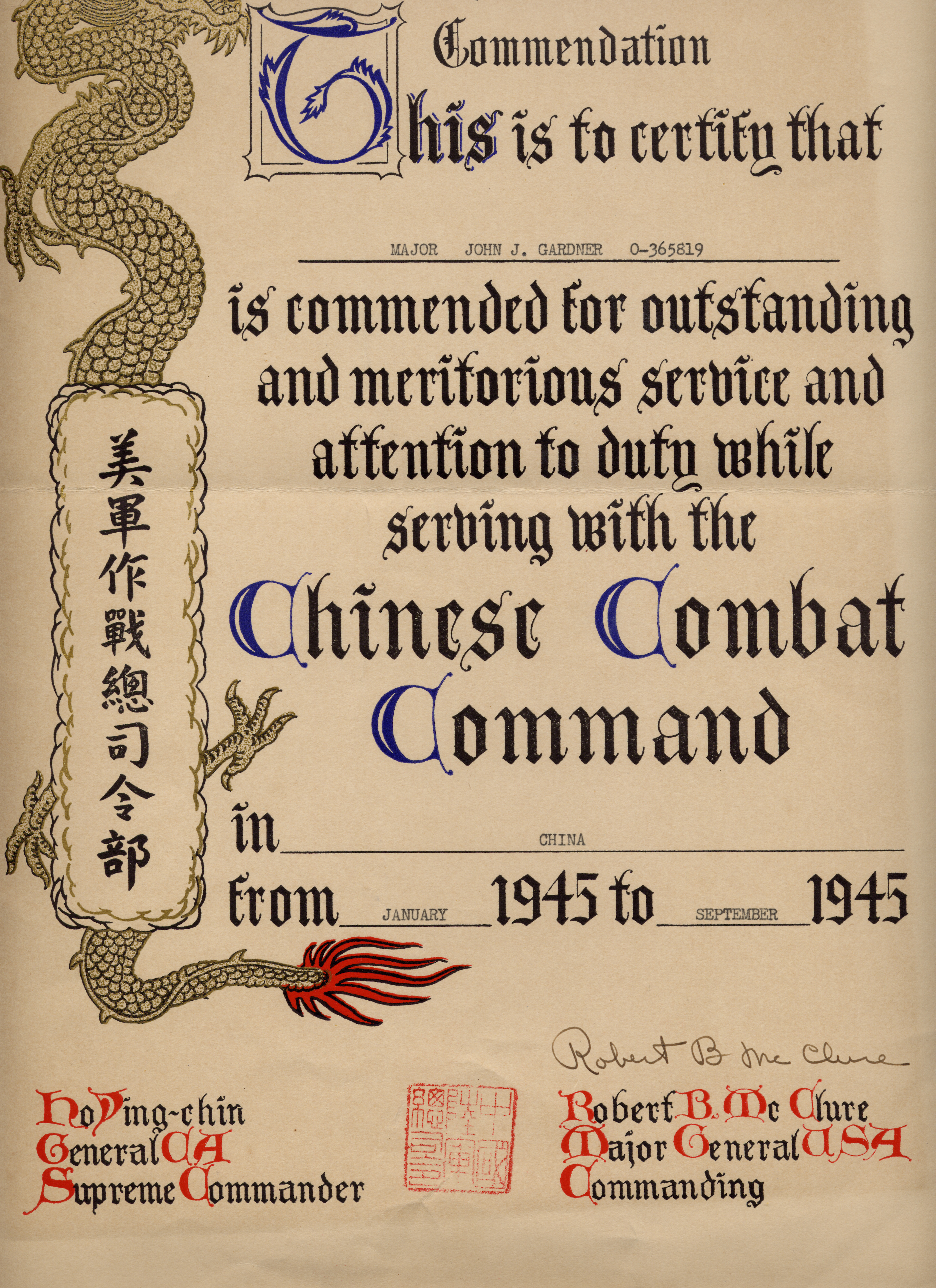 Top portion of Commendation from Maj. Gen. McClure & Gen. Ho Ying-chin received by Maj. Gardner