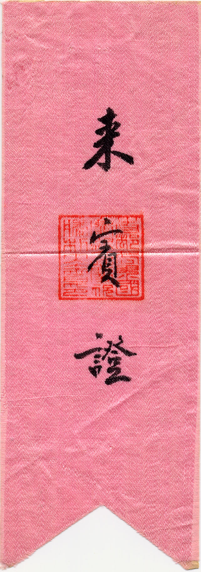 Not an envelope, but the pink paper is glued to heavy card stock. Has been written on ... as if to correct something. Pink was used for the Victory Ribbon below, and these may be related.