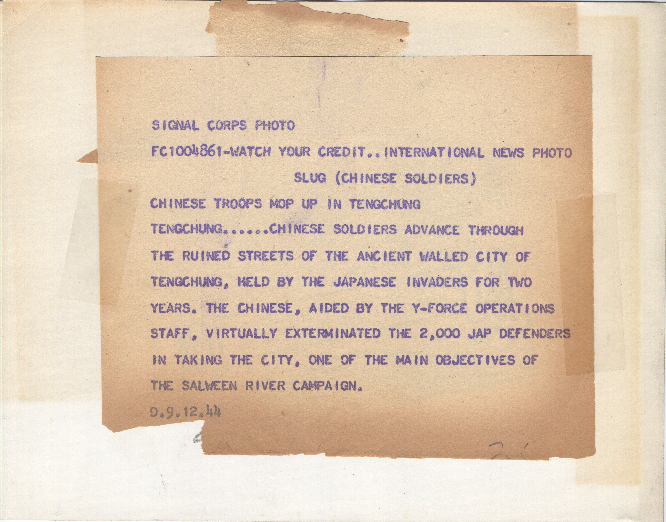 (Personal collection of Jennifer Bryant Wedge, daughter of the the War Correspondent/Photographer who took this photo as noted on the reverse side)
