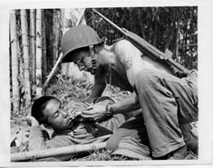 Sorry about the delay in responding to your extremely kind words regarding my website dedicated to Father, John J. Gardner. As a hobby, I am an amateur photographer and I have the utmost respect and admiration for war correspondents/photographers, especially those who served in the CBI Theater. I was particularly attracted to your father's photograph of the wounded Kuomintang soldier. Maybe it was the tattoo, or simply the composition and undeniable translation of one human being caring for another. I colorize black and white photos using special software and I thought this photo might lend itself to partial colorization. However, now that the picture has a personal connection to me, I'll leave it alone!