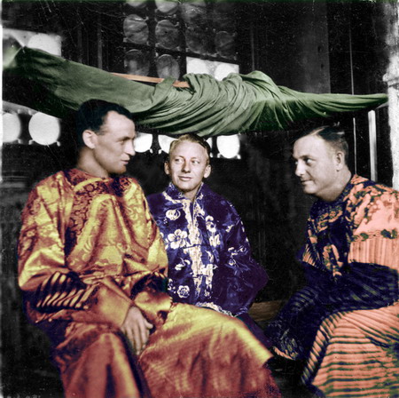 Maj. Gardner along with two American Liaison Officers dressed in traditional Chinese clothing.