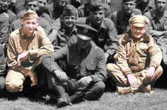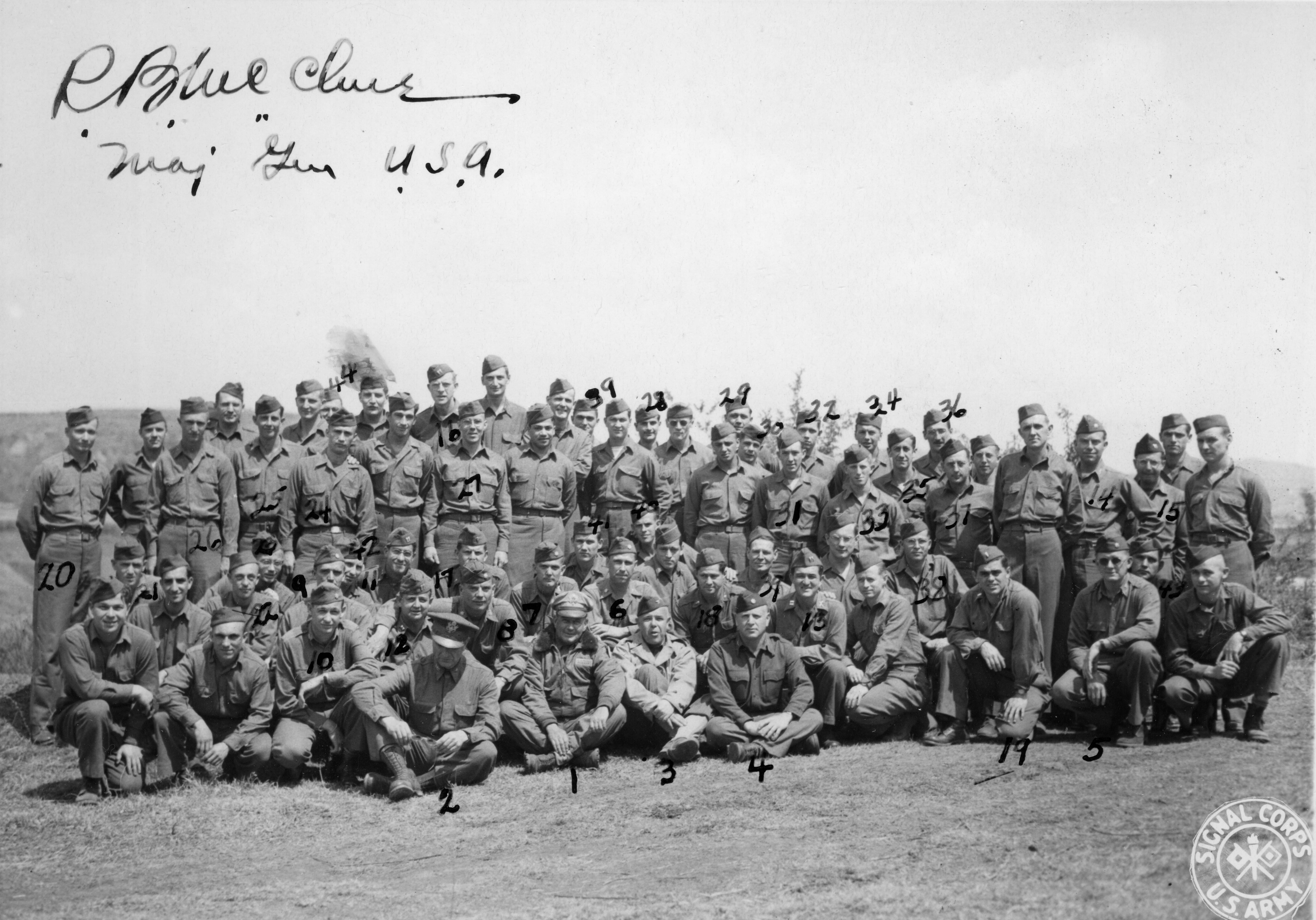This is special effects image. I cropped a section from the previous photo then enlarged it and colorized Maj. Gardner and Maj. General Robert B. McClure, right. Sitting between them is Brig. General Emerick Kutschko. One of Maj. Gardner's best friends, Maj. Jefferson I. Davis, Jr. is sitting behind him to his left.