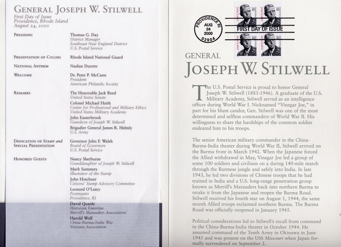 Lt. General Joseph W. Stilwell First Day of Issue Stamp Ceremony Program, front & back