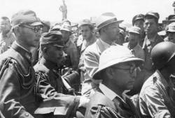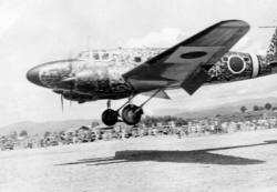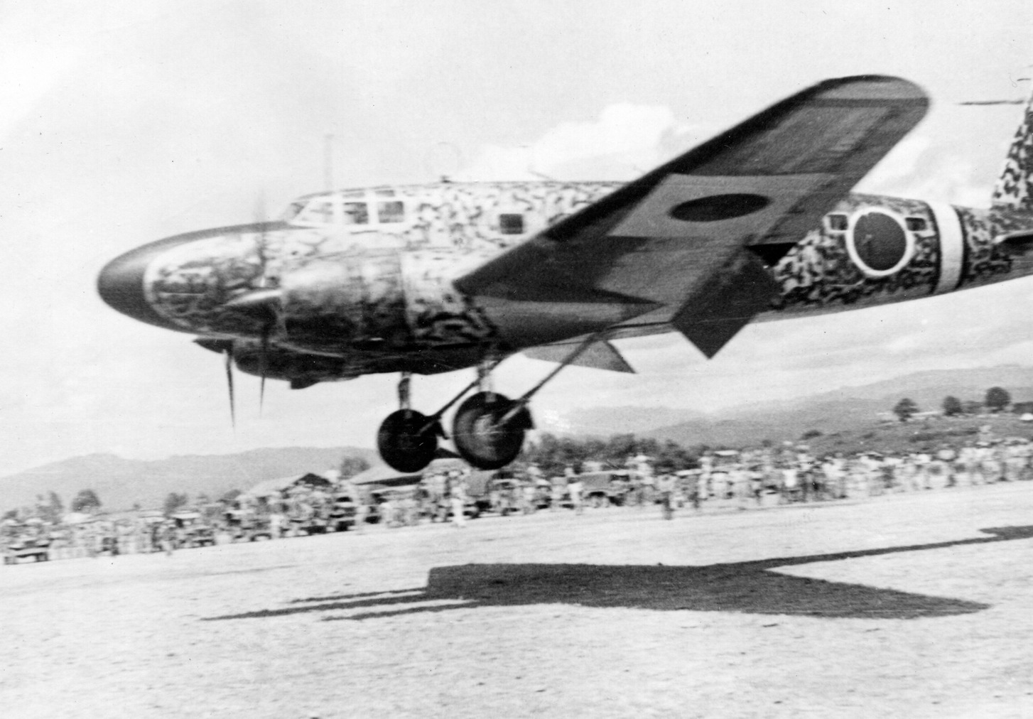 This Japanese bomber was landing in Nanking on September 9, 1945. On board was Lieut. Gen. Okamura Yasutsugu, Commander of the Japanese Forces in Central China, plus others in the Japanese delegation.