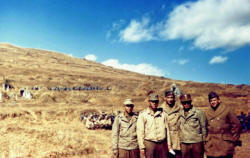 This is an enlargement of a very small Kodachrome print (1.5" x 3"). It was taken in China most likely near Chihchiang in Central China. Major Gardner is standing in the middle with Chinese Officers on either side of him. His good friend Capt. Jefferson I. Davis, Jr. is standing at right. If you look closely, you can see hundreds of Chinese Infantryman sitting on the hillside. The Chihchiang Campaign took place in China 8 April - 7 June 1945 and was one of the last skirmishes before the war was ended with the dropping of an Atomic Bomb on Hiroshima and Nagasaki.